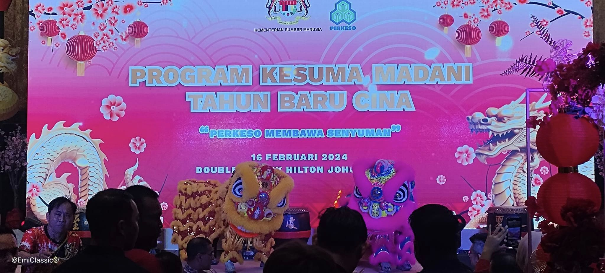 Johor Bahru, 20 February – PERKESO Chinese New Year 2024 KESUMA MADANI Program was held at the DoubleTree by Hilton Hotel, Johor Bahru. This ceremony was graced by the presence of the guest of honor YB Steven Sim Chee Keong, Minister of Human Resources and also YB Dato’ Sri Haji Abdul Rahman Haji Mohamad, Deputy Minister of Human Resources.