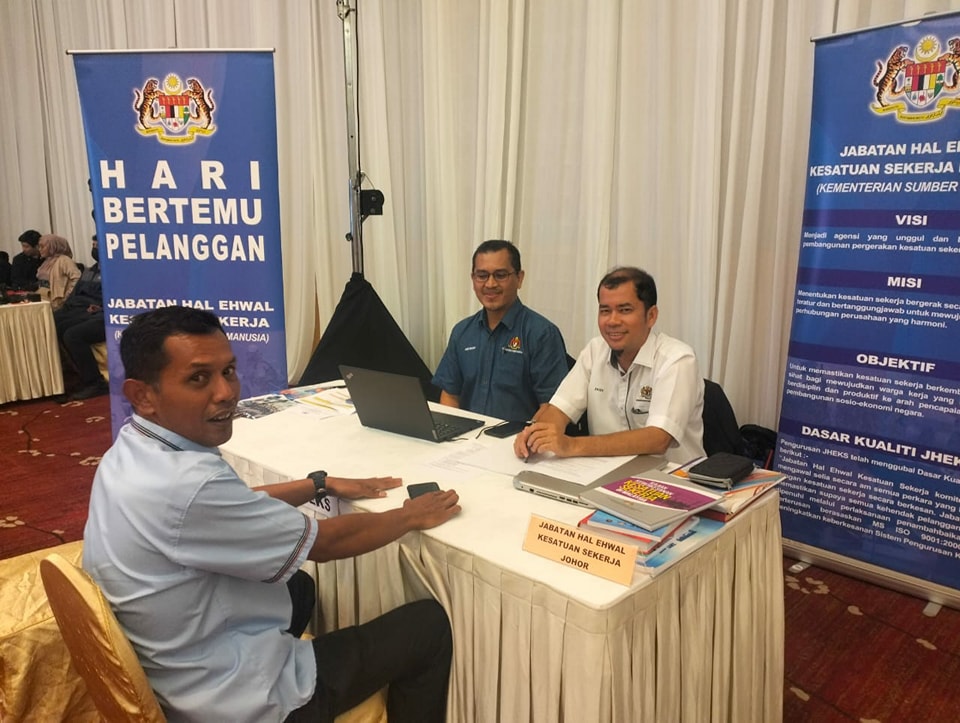 Menerusi program tersebut seramai 22 orang pengunjung daripada lapan buah kesatuan sekerja telah bertemu mendapatkan khidmat nasihat dan panduan di reruai Jabatan Hal Ehwal Kesatuan Sekerja (JHEKS) Johor.