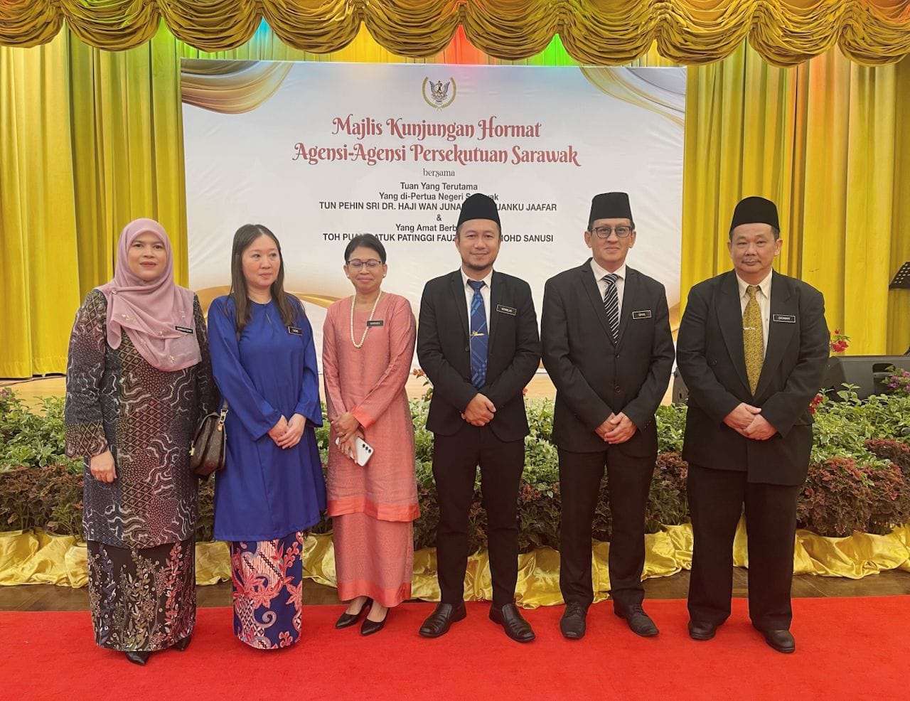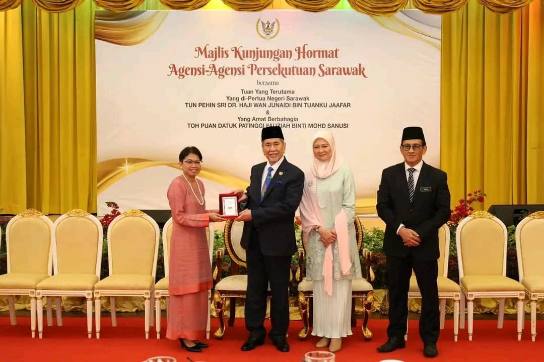 KUCHING, 17 Oktober 2024 – Majlis kunjungan hormat Agensi Persekutuan Sarawak bersama Tuan Yang Terutama Yang di Pertuan Negeri Sarawak ke atas Tun Pehin Sri Dr. Haji Wan Junaidi bin Tuanku Jaafar & Yang Amat Berbahagia Toh Puan Datuk Patinggi Fauziah binti Mohd Sanusi.